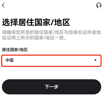2、按要求选择【居住国家/地区】,点击【确认】