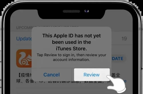 2、登录新ID:使用刚才注册的美区ID账号密码进行登录 >> 在弹出的确认框中点击“Review” 进入到激活页面。