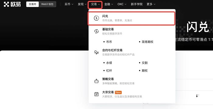 欧易OKX交易所如何进行币币闪兑?
