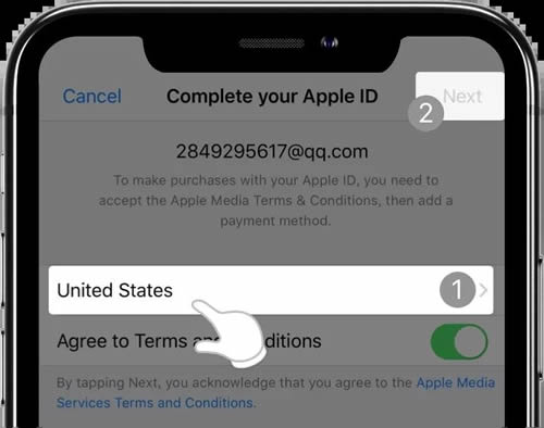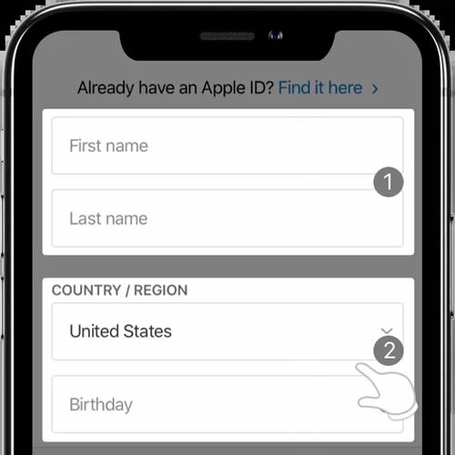 *该页面的邮箱需要填写未注册过Apple ID的新邮箱;国家需要选择 United States;生日最好选择18年以前的日期。