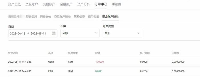 1、闪兑成功的资产可在【资金账户】查看