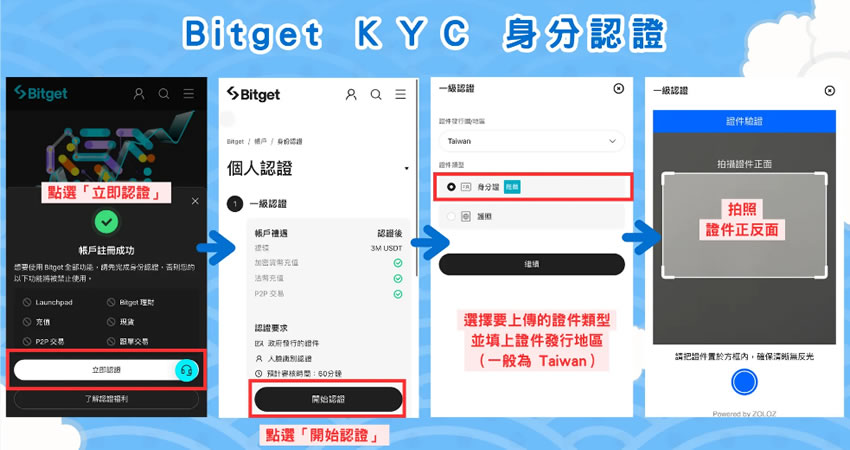 在Bitget 的KYC 流程中,也只需要准备以下文件:身分证/ 护照